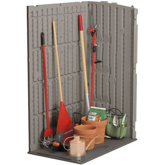 這個大型垂直存儲棚為那些空間較小且存儲需求大的人提供了一個很好的解決方案。 提供 54 立方米。 英尺的存儲空間和可定制的內部空間,最多可容納三個木架子(不包括在內),這個棚子涵蓋了從長柄工具和梯子到園藝裝備等各種存儲可能性。 該產品由耐用的多壁樹脂面板製成,專為強度和穩定性而設計,經久耐用,並且在每個季節都易於維護。 此外,借助可掛鎖的門把手和用於存放較重物品的強化樹脂地板,您可以輕鬆安全地存放所有戶外必需品。 小空間並不意味著您必須在存儲上妥協。