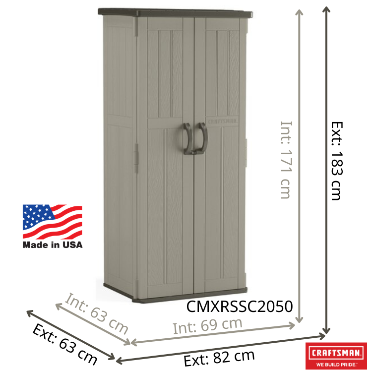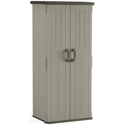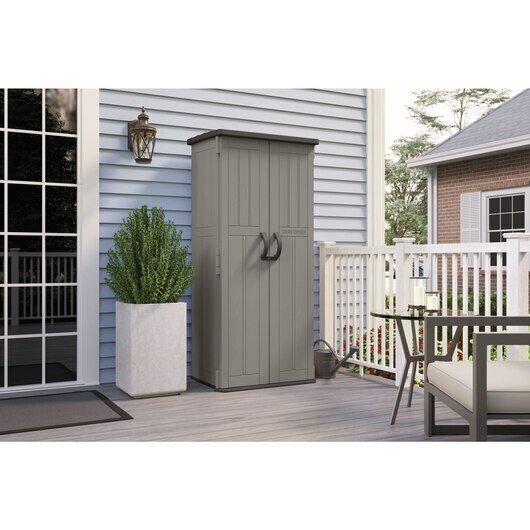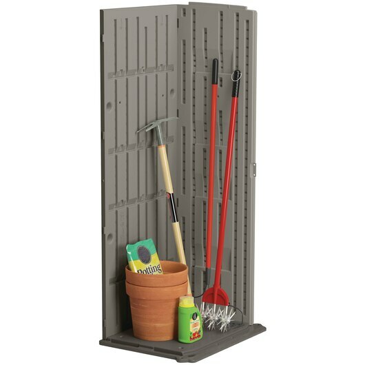 非常適合組織工具、園藝裝備、梯子等,垂直儲物棚是小露台、門廊或陽台的完美選擇。 這款防水、防紫外線的棚屋具有可定制的內部結構,最多可支撐四個擱板(不包括在內),其耐用的多壁樹脂結構可提供全年的組織,更不用說易於維護。