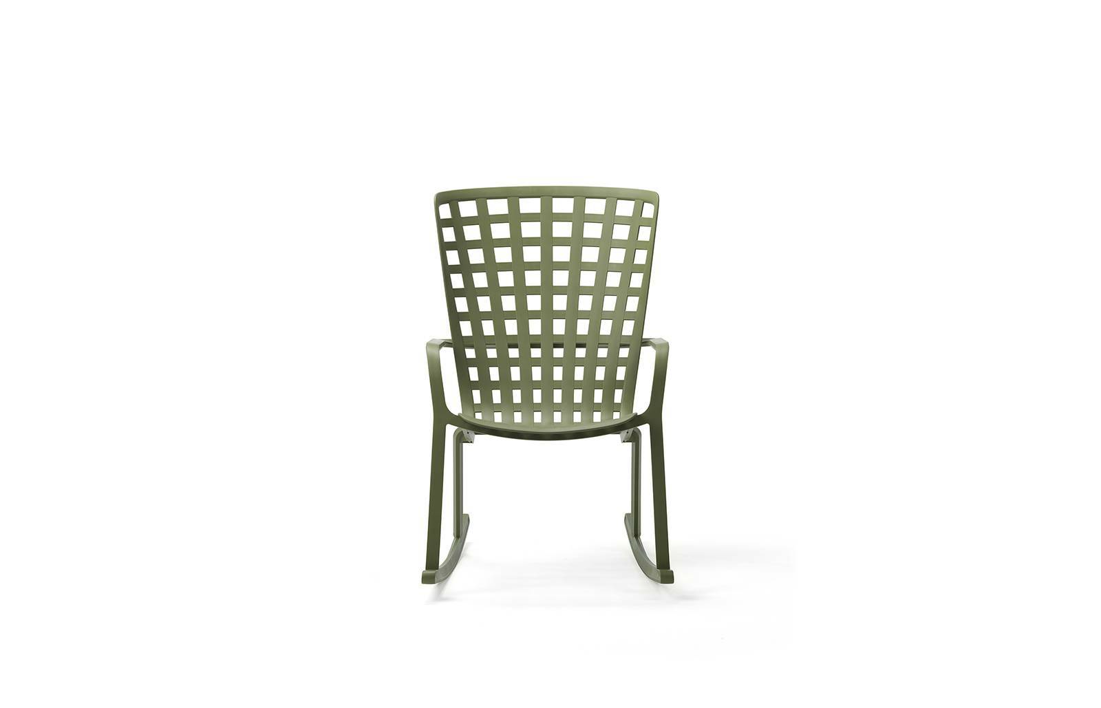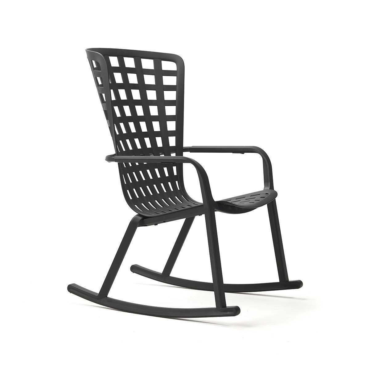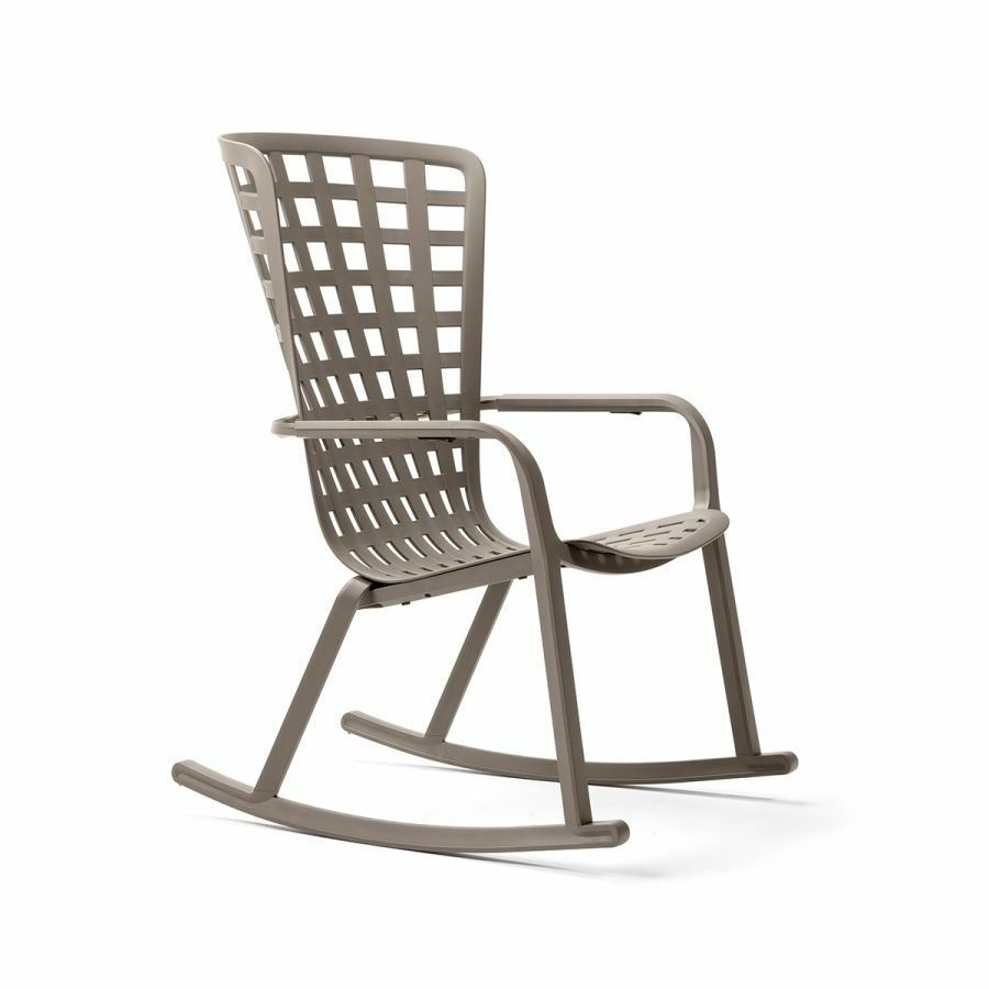Folio Rocking 是一款休閒時尚的戶外搖椅,由玻璃纖維樹脂製成,帶有穿孔方形圖案和啞光飾面。