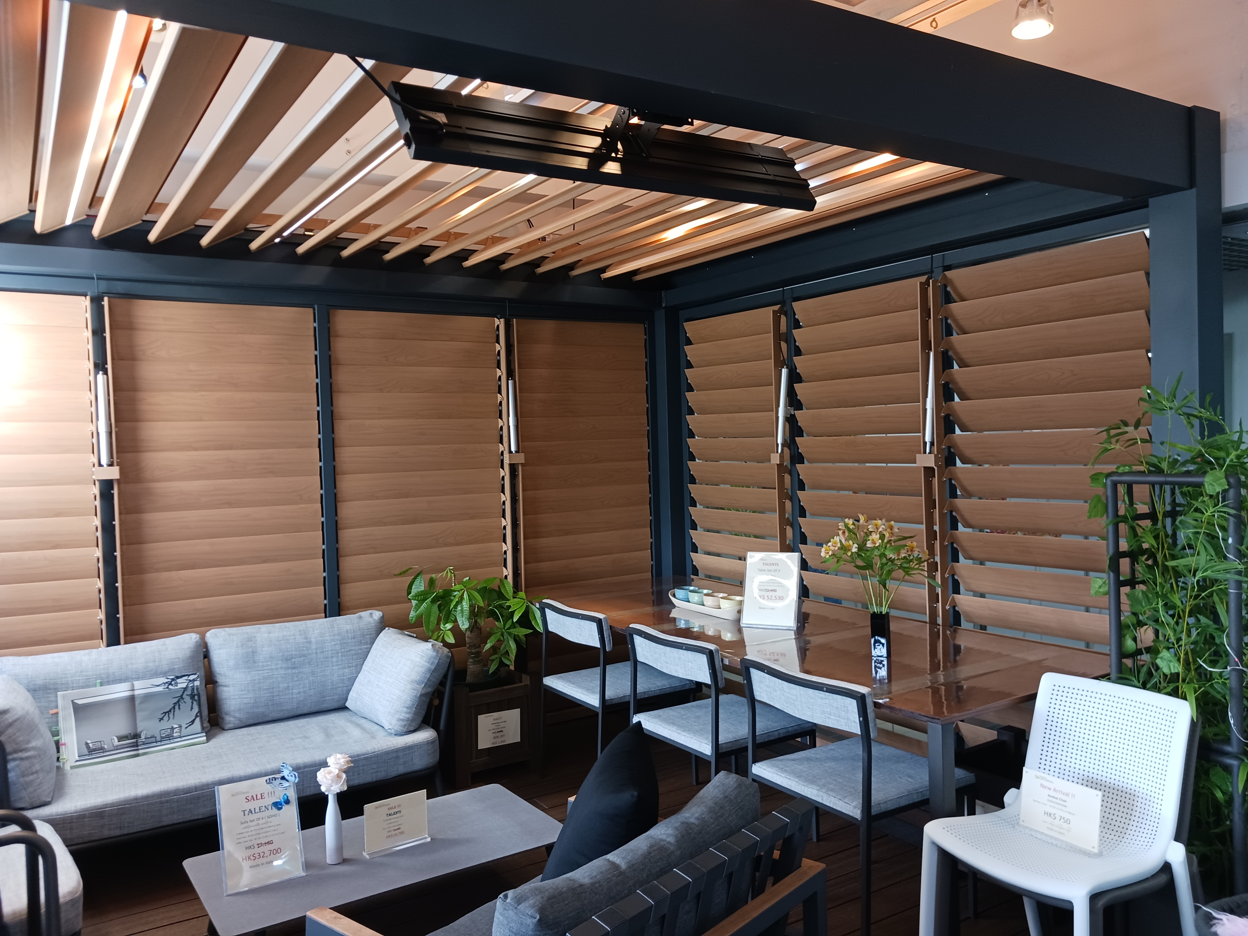 為您準備的星光百葉棚,有各種尺寸可供選擇。 屋頂百葉窗可以產生陰影,也可以打開讓陽光進入。