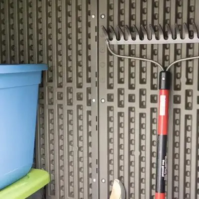 整理車庫和維護院子可能是一項具有挑戰性的任務。無論您需要為庭院工具或其他設備提供空間,您都需要正確的解決方案來保持一切井井有條。 Lifetime 的 Rough Cut™ Vertical Shed 為您在家中存放各種物品提供了絕佳的空間。 Rough Cut™ 飾面具有木紋紋理,可提供木材的自然外觀和感覺,無需維護油漆或染色。它還具有防紫外線和耐候性。棚子通過為更大的物品(如耙子、掃帚、鏟子、儲物箱、垃圾箱甚至大多數推式割草機)提供充足的空間,從而釋放了車庫中寶貴的空間。耐用、抗衝擊的結構、鋼筋牆和可鎖門(不包括鎖)為您的物品提供了充足的保護。使用終生垂直棚,您可以讓您的院子看起來井
