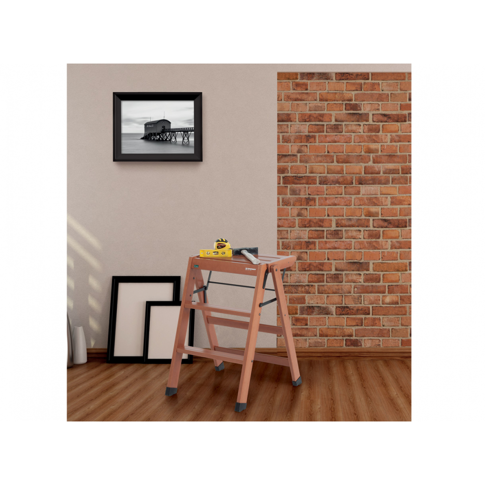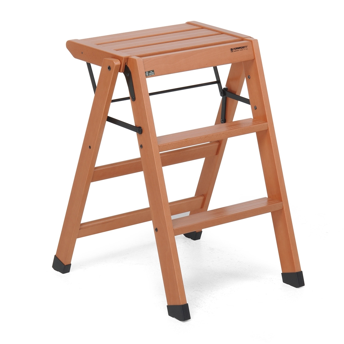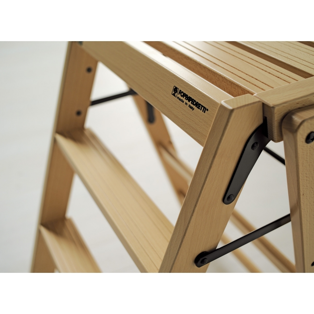 The LoSgabello wooden stool by Foppapedretti is stable and safe. It has a wide platform, two non-slip steps and non-slip stabiliser feet.