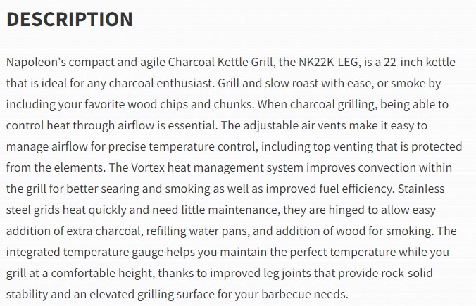 Napoleon PROFESSIONAL 22 CHARCOAL KETTLE - NK22K-LEG-3