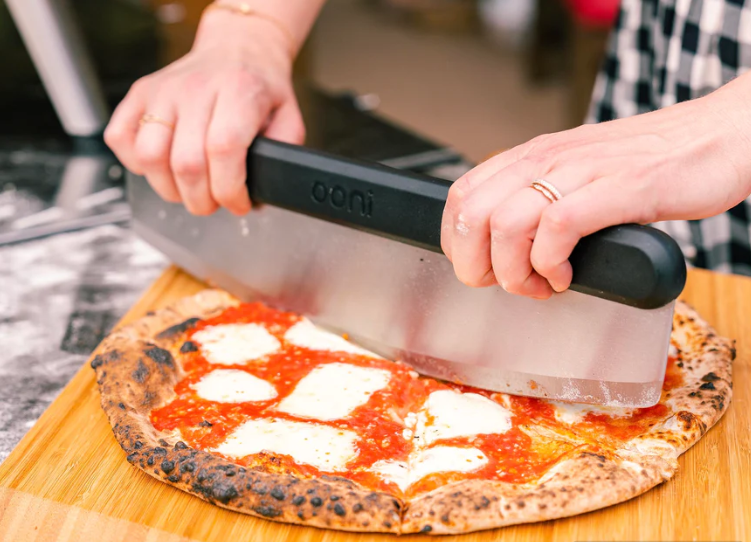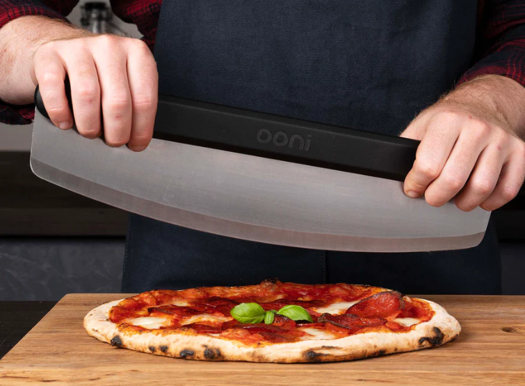 隆重推出 Ooni 披薩刀搖桿刀片 - 14 英寸不銹鋼刀片,帶有易於抓握的手柄。 通過一個快速動作,毫不費力地將整個披薩切成兩半。 每次都是完美的切片。 立即提升您的披薩遊戲水平!