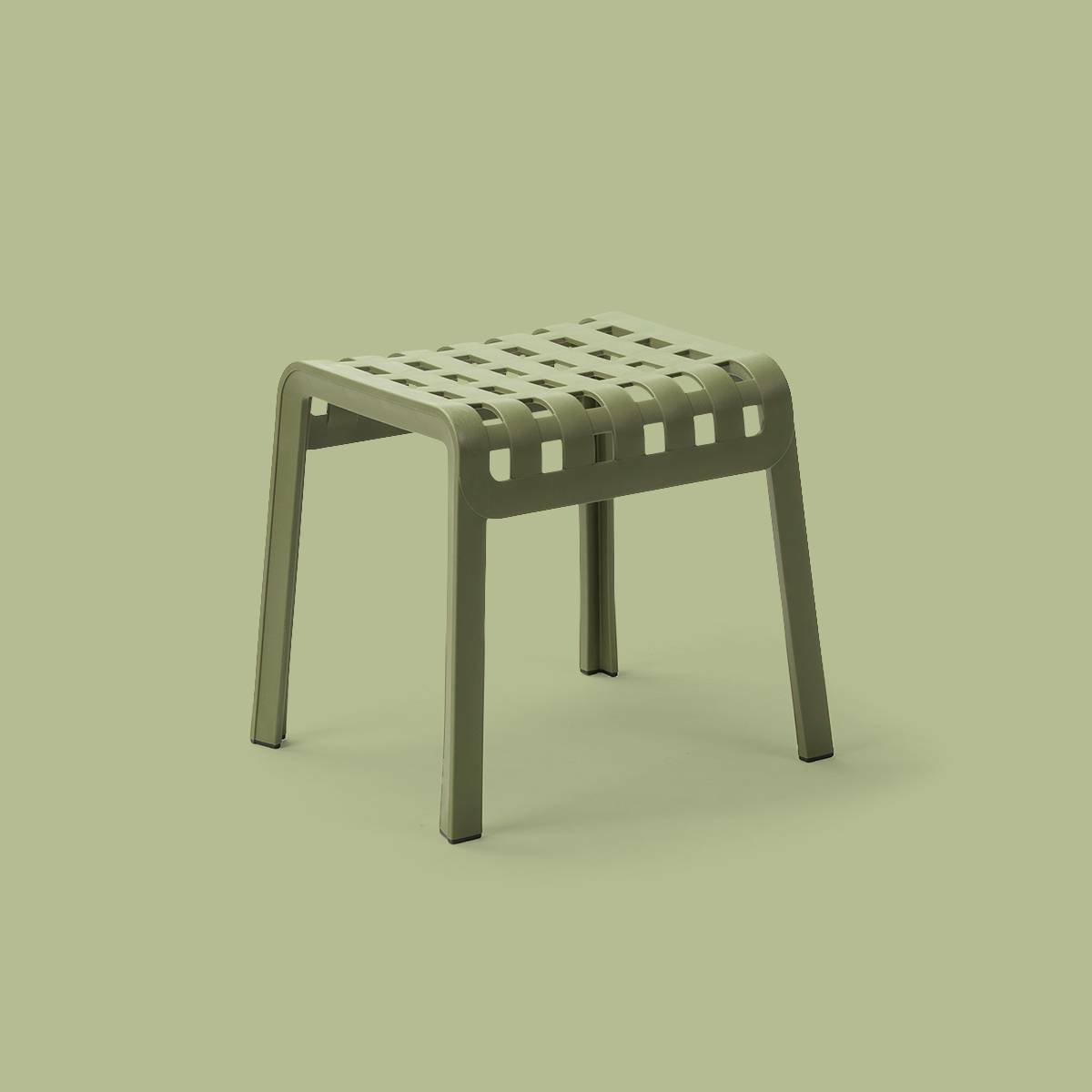 Poggio 是一款戶外使用的腳凳/凳子,由玻璃纖維樹脂製成,帶有裝飾有方形圖案的穿孔框架,為戶外環境增添了一絲非傳統風格。 Poggio 作為全新 Folio 系列休閒扶手椅的功能性腳凳呈現,是一款精緻的家具配件,可單獨購買。