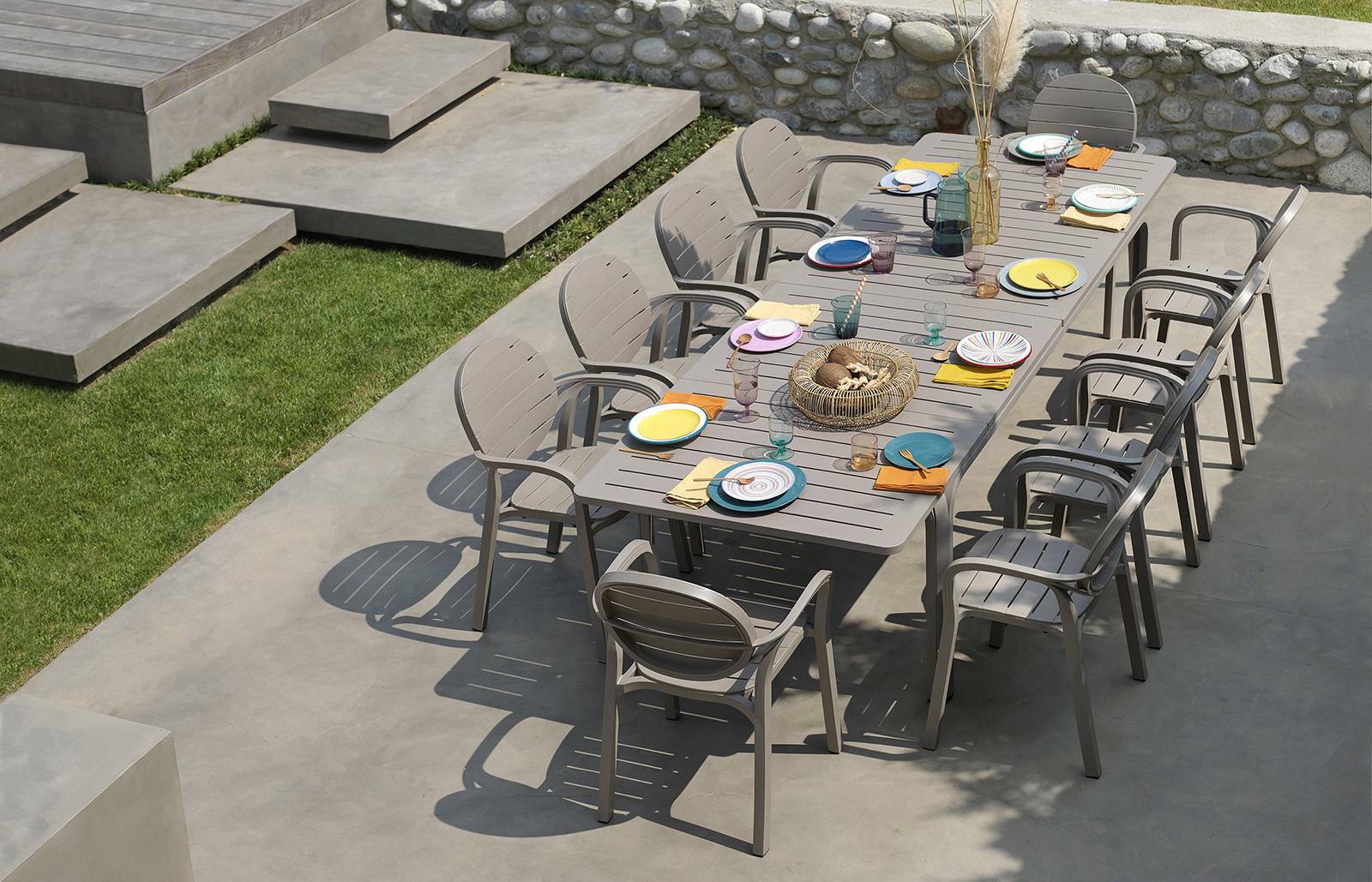具有建築細節和強烈個性的可伸縮桌子。 經過紫外線處理的大色 DurelTop 板條桌面和塗層鋁框架。 堅固而實用。 有兩種尺寸可供選擇。