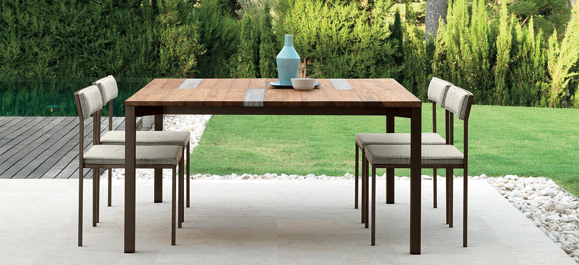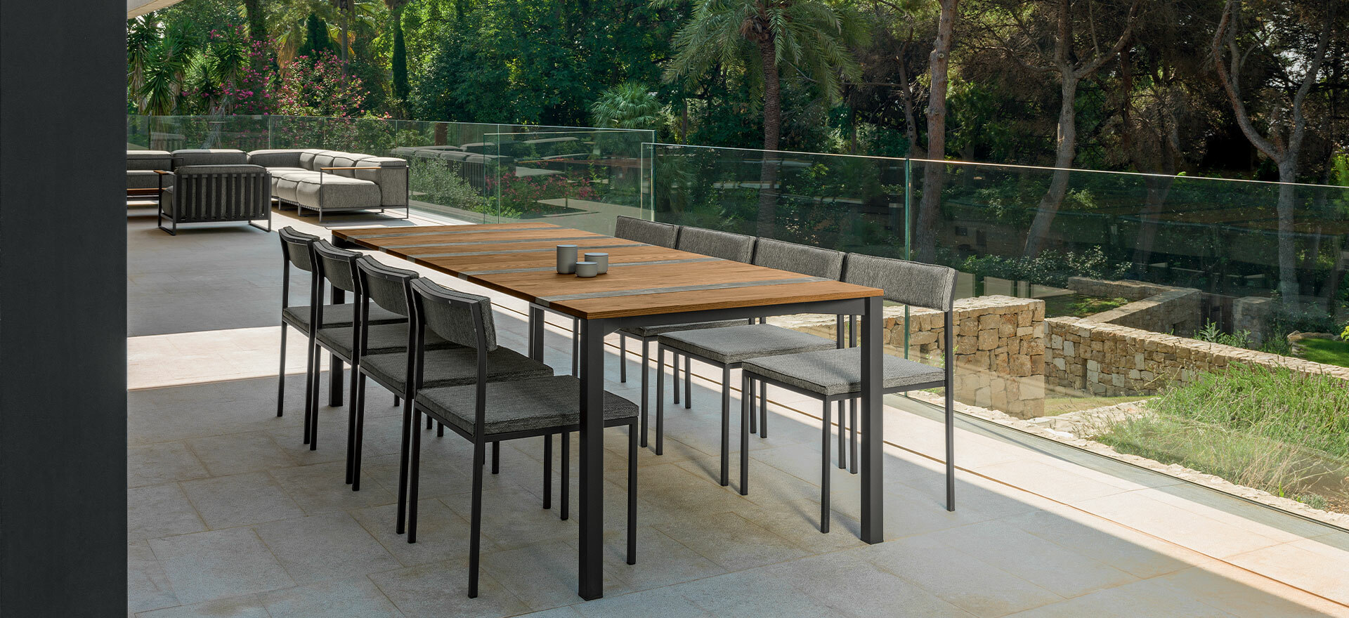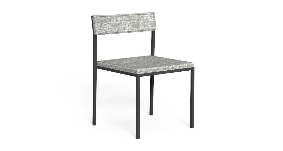 The Casilda dining chair is without armrests. Despite its geometric and linear frame, like the entire collection , proves strength and stability thanks to the powder coated stainless steel frame.